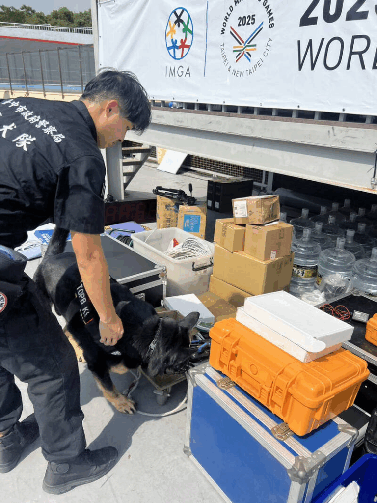 台中市刑警大隊長李明道指出,警犬在國際級運動賽事中擁有不可或缺的地位,不僅強化整體場地安全,更展現出台灣對國際活動維安工作的高度重視與專業水準。