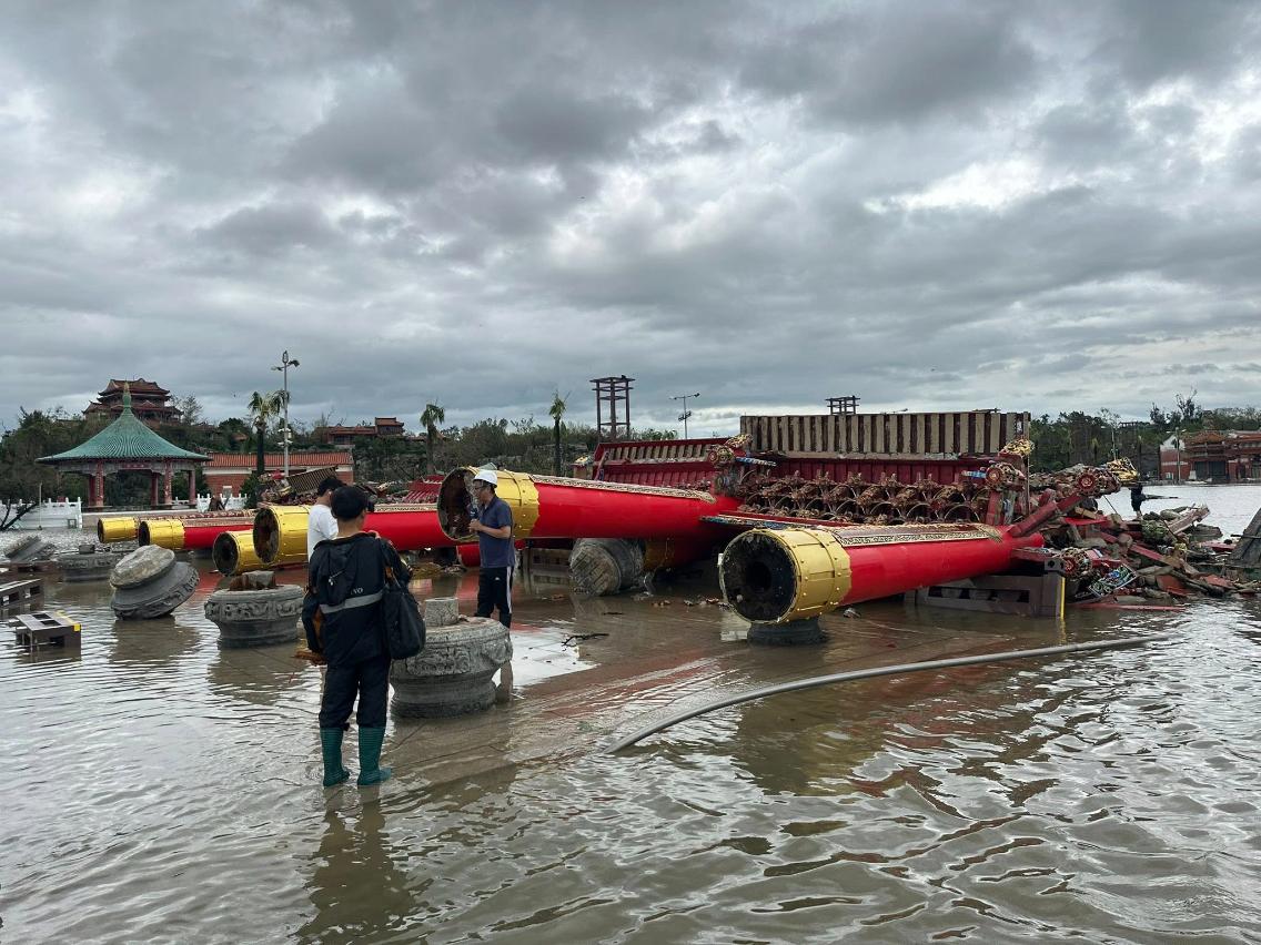 這次丹娜絲颱風帶來的不僅僅是強風與豪雨,對南部地區的農村生活與在地信仰文化也造成了深層衝擊。象徵地方精神核心的南鯤鯓代天府牌樓坍塌,不只是實體建築受損,更像是重重敲擊了當地居民的內心。立委陳亭妃指出,此刻地方最需要的不只是修復工程,而是中央各單位能夠即時伸出援手、協同合作,「讓災民知道,他們並不是獨自面對困境。」