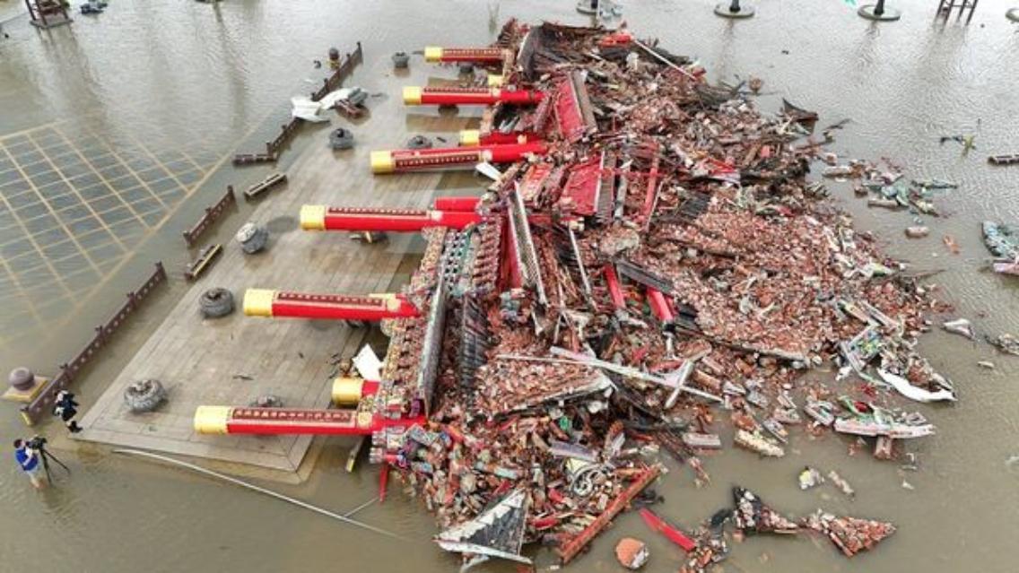 暴風來襲不留情 百年牌樓倒塌成瓦礫