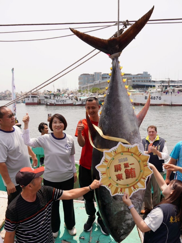 屏東縣長周春米也親自到場,為這尾象徵屏東榮耀的黑鮪魚掛上「屏東第一鮪」標誌,象徵黑鮪魚季正式揭開序幕。