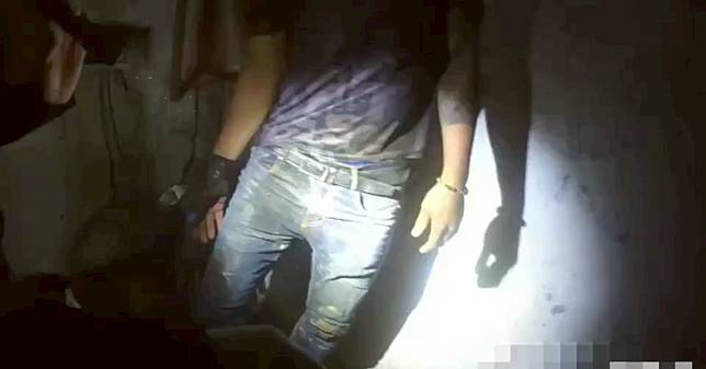 工作人員穿越雜草叢生的樹林,來到通往地下室的隱密入口,直到警方趕到現場後,才敢打開那扇重重的鐵門。門一開,藏身其中的男子瞬間愣住,明顯沒料到會被逮個正著。由於嫌犯遲遲不敢露面,員警果斷跳入通道內,直接將三名嫌疑人全數制伏,成功上演一場「地下活逮」。